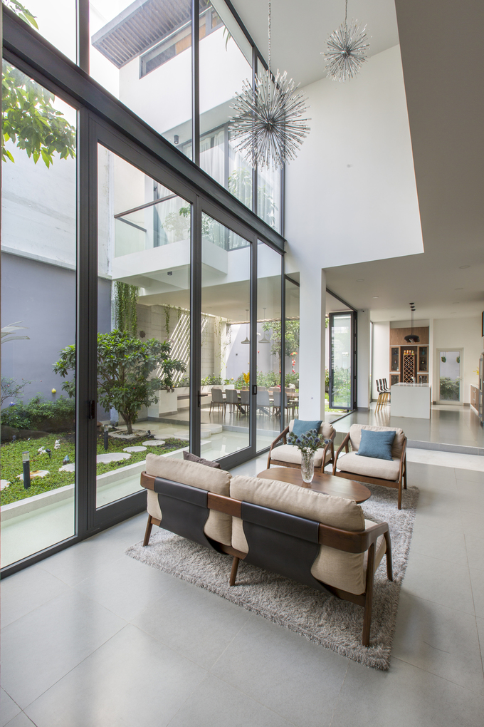 Ngôi nhà không chỉ sáng, thoáng nhờ tường kính. Các giếng trời cũng góp phần mang ánh sáng và gió tự nhiên vào trong nhà.” />Ngôi nhà không chỉ sáng, thoáng nhờ tường kính. Các giếng trời cũng góp phần mang ánh sáng và gió tự nhiên vào trong nhà.